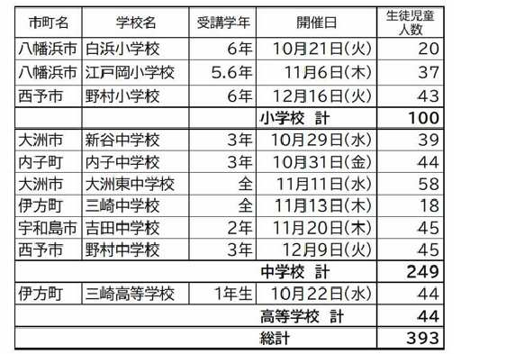 伊方発電所周辺30キロ圏に属する5市2町の小中学生、愛媛県立三崎高等学校の皆さんを対象に、放射線に関する正しい基本的な知識を理解していただくため、放射線セミナーを開催しました。
